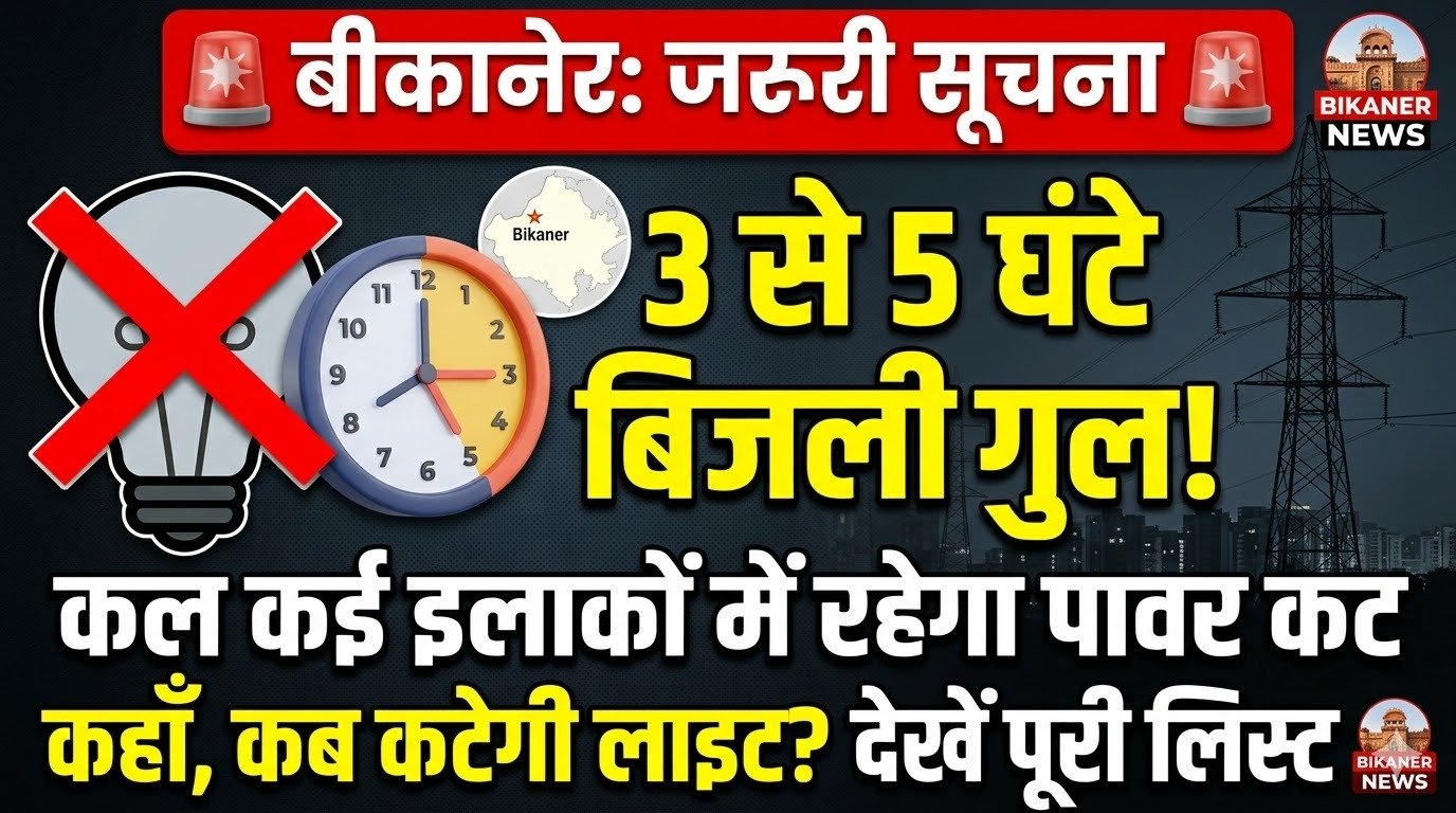 बीकानेर में मंगलवार को कई इलाकों में बिजली कटौती, अलग-अलग समय पर 3 से 5 घंटे तक आपूर्ति रहेगी बंद